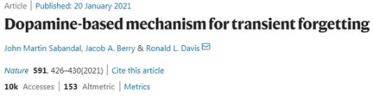 2021年1月20日,美国Scripps研究所的研究人员在国际顶尖学术期刊 Nature 杂志发表了研究论文《基于多巴胺的短暂遗忘机制》。[1]